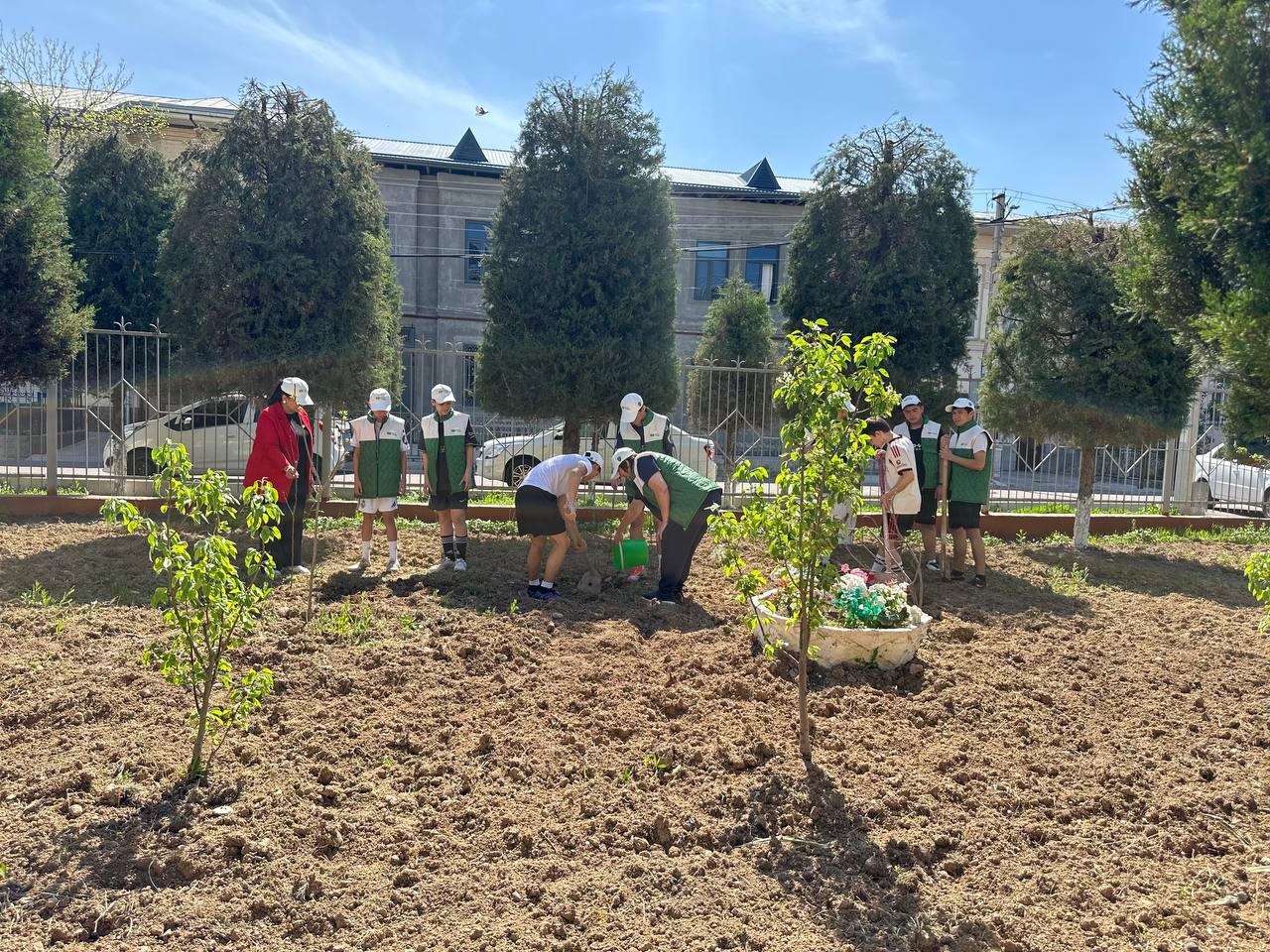01.04.2026 “Yashil makon” umummilliy loyihasi doirasida 40 tup mevali daraxt ko‘chatlari olib kelinib bitiruvchi o‘quvchilar bog‘i barpo etildi